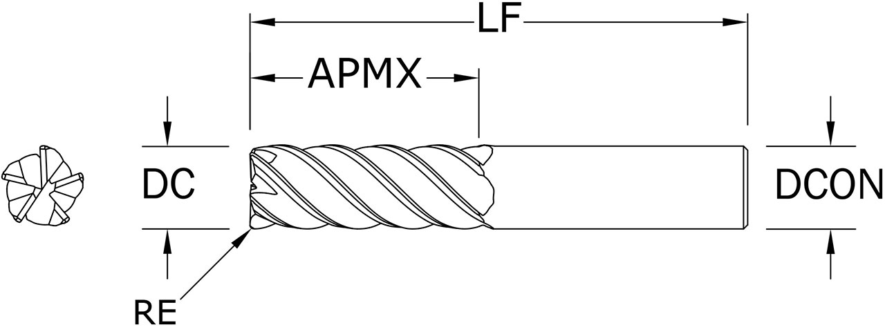 SGS 1/2″ Dia, 5 Flute, Corner Radius End Mill – 32576