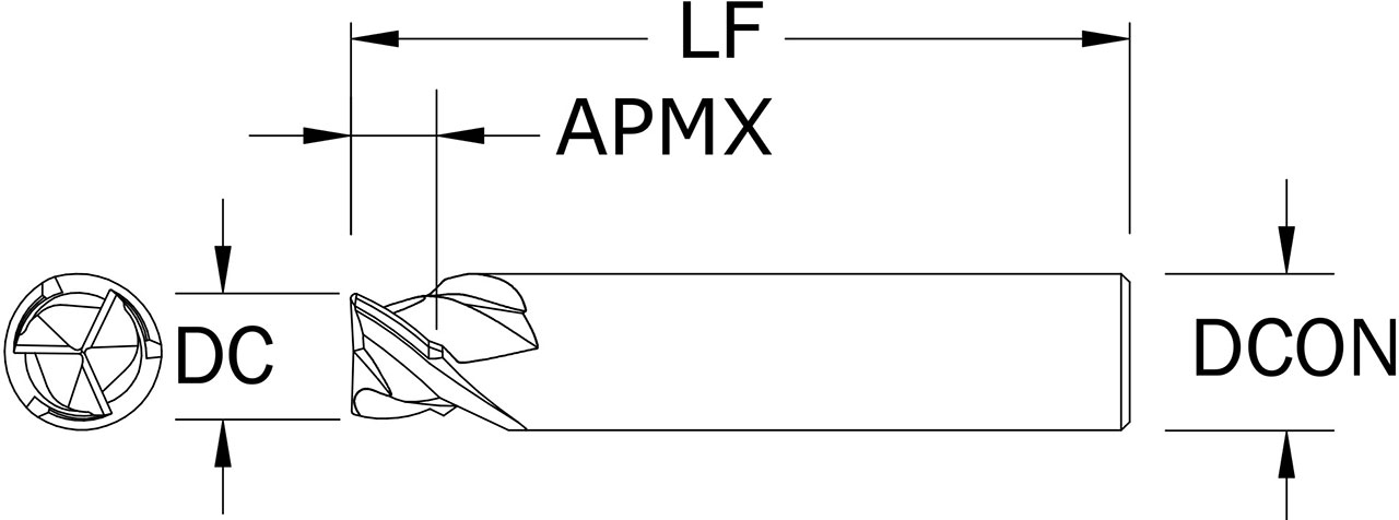 SGS 0.2100″ Dia, 3 Flute, Corner Radius End Mill – 33360