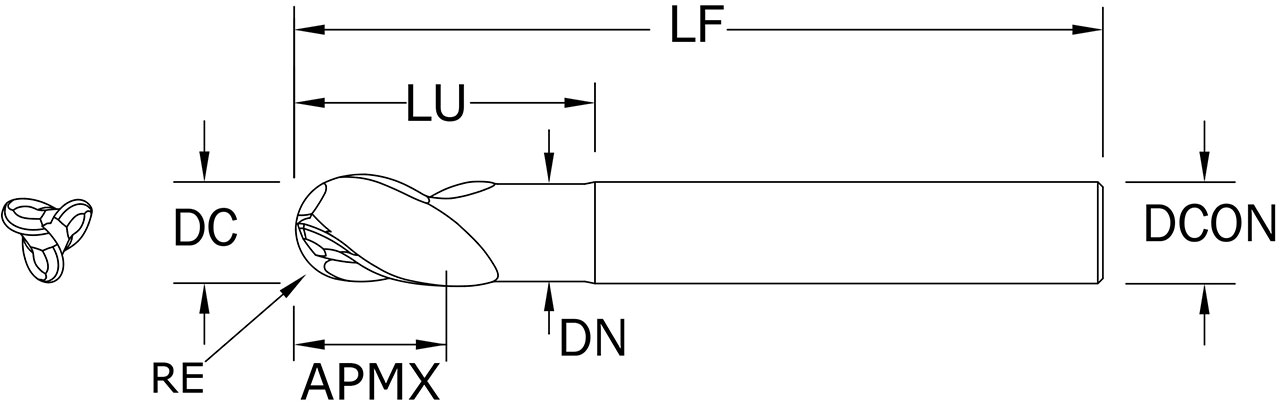 SGS 1/4″ Dia, 3 Flute, Ball Nose End Mill – 34942