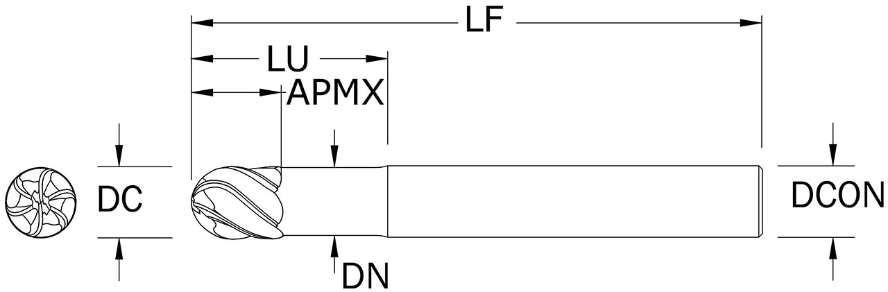 SGS 5/8″ Dia, 6 Flute, Ball Nose End Mill – 35227