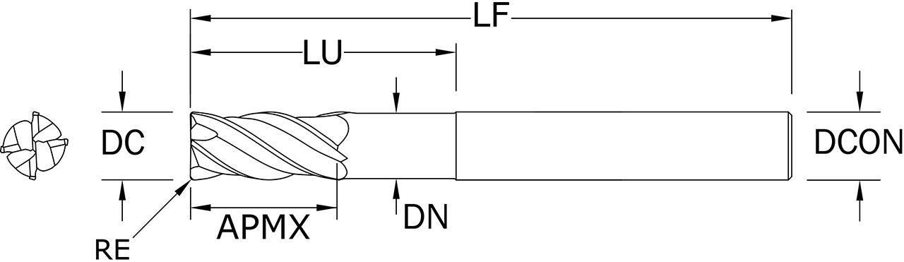 SGS 3/4″ Dia, 4 Flute, Corner Radius End Mill – 36472