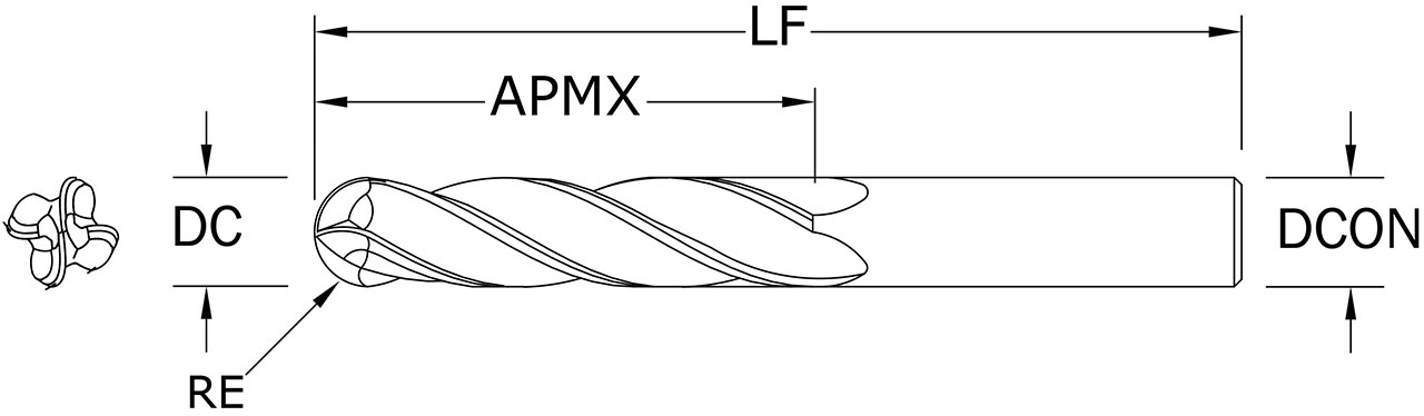 SGS 4.00mm Dia, 4 Flute, Ball Nose End Mill – 70529