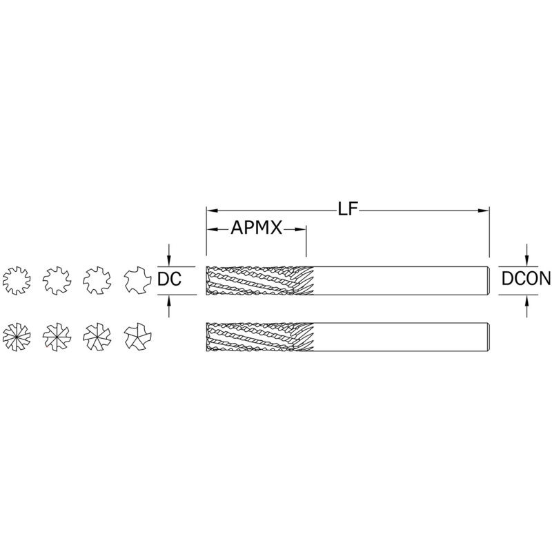 SGS 12.00mm Dia, 38.00mm LOC, 89.00mm OAL, 12.00mm Shank Dia, 10 Flute, 15 Degree Helix, Di-NAMITE (Diamond) Coated, Series 31M, Series CCR CFRP Coarse Cut Router