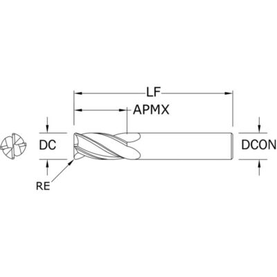 SGS 6.00mm Dia, 19.00mm LOC, 6.00mm Shank Dia, 1.50mm Radius, 4 Flute, 30 Degree Helix, Ti-NAMITE-A (AlTiN) Coated, Series 01C, Corner Radius End Mill